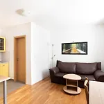 Este apartamento consta de un patio y un balcón con un escritorio, y comodidades modernas como TV y TV de pantalla plana con canales vía satélite. Además de secadores de pelo, artículos de tocador para huéspedes y toallas, el cuarto de baño privado cuenta con un inodoro separado de la ducha y ducha.